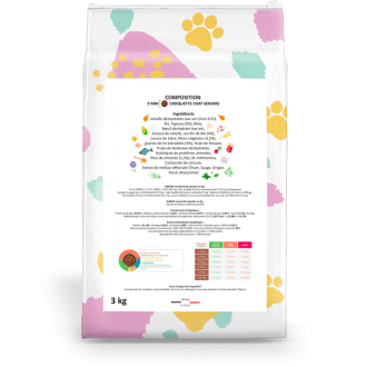 Amidon 24%, Oméga3-0,77% ; Oméga6-3,44% ; Ratio Protido Calorique pour 1000 Kcal 81,1 ; Ratio protéines/matières minérales 4,5 ; Ratio O3/O6 4,46 ; Taux de protéines d’origines animales 92% Taux d’éclatement d’amidon (digestibilité de l’amidon) >90% évalué Digestibilité Iléale des protéines > 90% évaluée