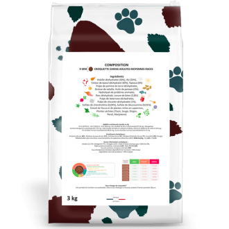 Nos croquettes excellence parfaitement adaptées à la physiologie de nos chiens, offrent en quantité et en qualité l’énergie métabolisable indispensable et l’ensemble des nutriments essentiels requis pour l’équilibre nutritionnel au quotidien du chien de taille moyenne. Chaque recette est adaptée à l’âge et au poids du chien. Toutes parfaitement étudiées, elles font appel à quatre familles d’aliments: les protéines, les fibres digestives et probiotiques, les omégas 3 & 6, les nutriments de confort et soutien santé. Pourvu d’éléments riches en confort digestif et enrichis en nutriments essentiels, elles correspondent parfaitement à la physiologie du chien de taille moyenne.